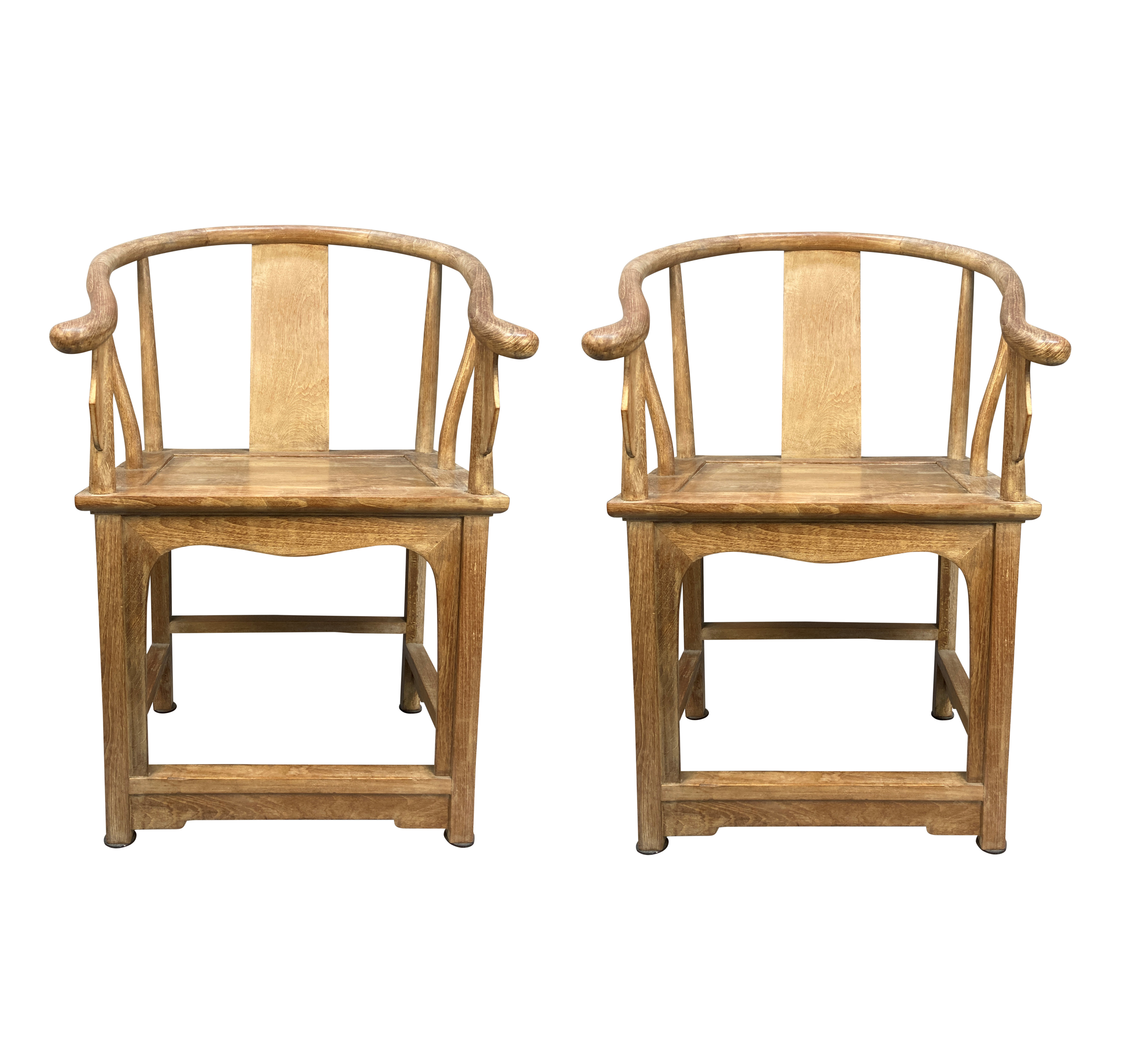 A PAIR OF CHINESE PICKLED ELM HORSESHOE ARMCHAIRS