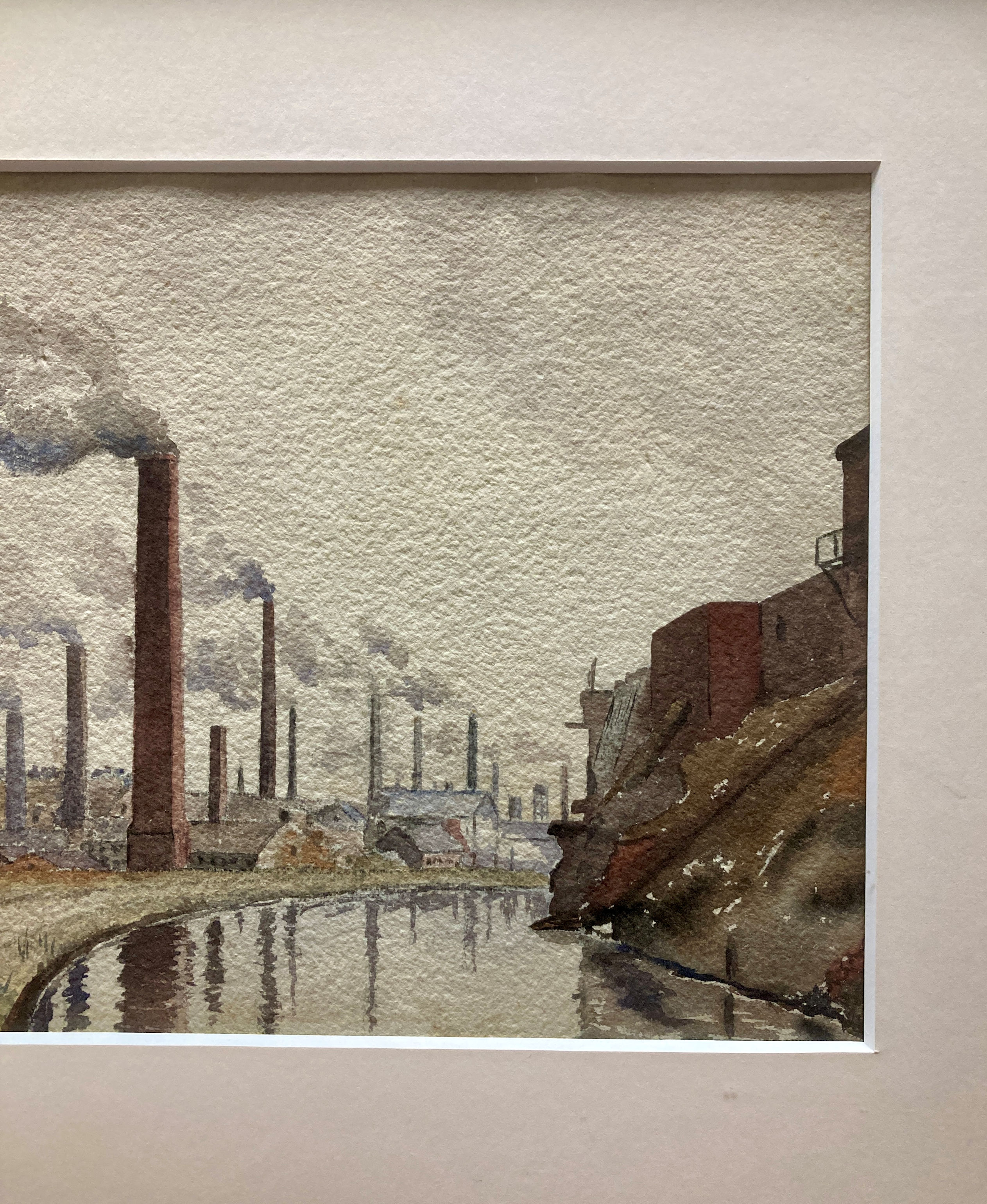 A gilt framed English watercolour, depicting a Northern mill town, signed and dated..
