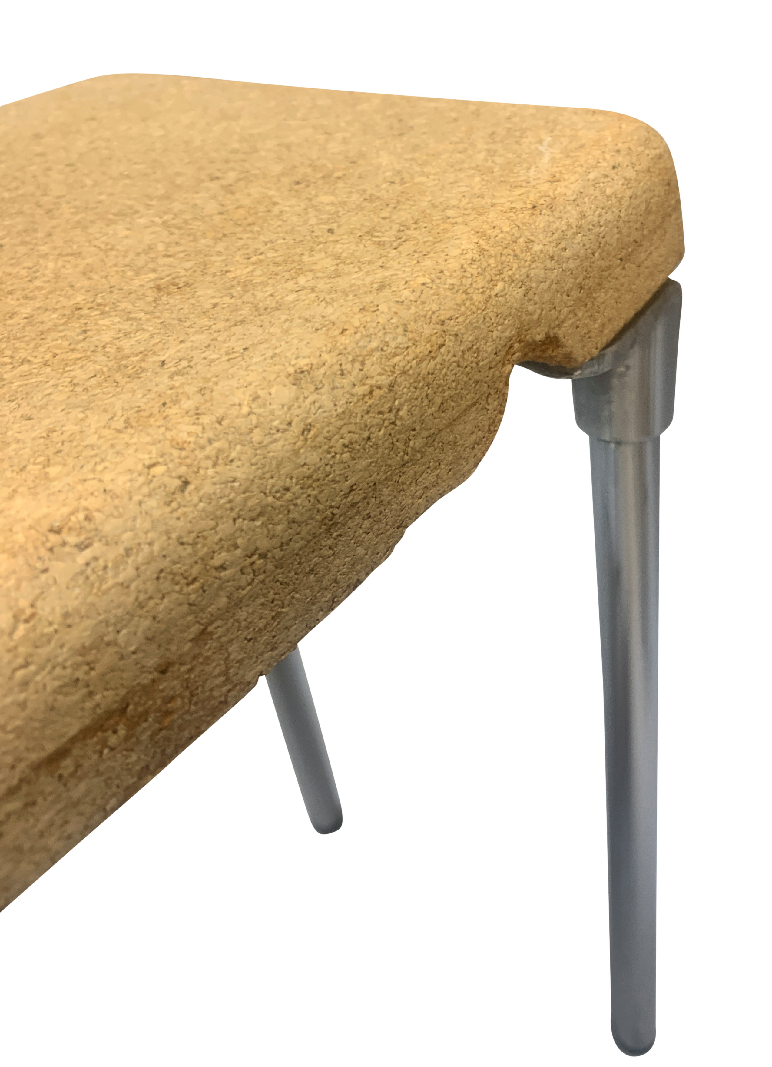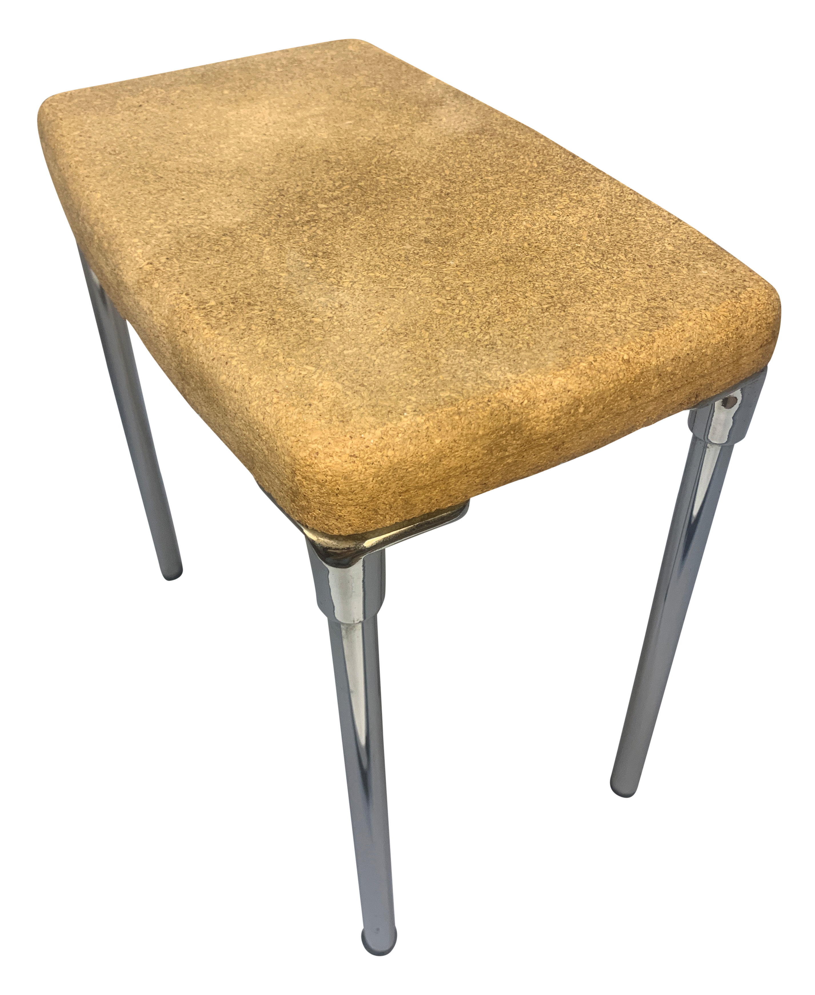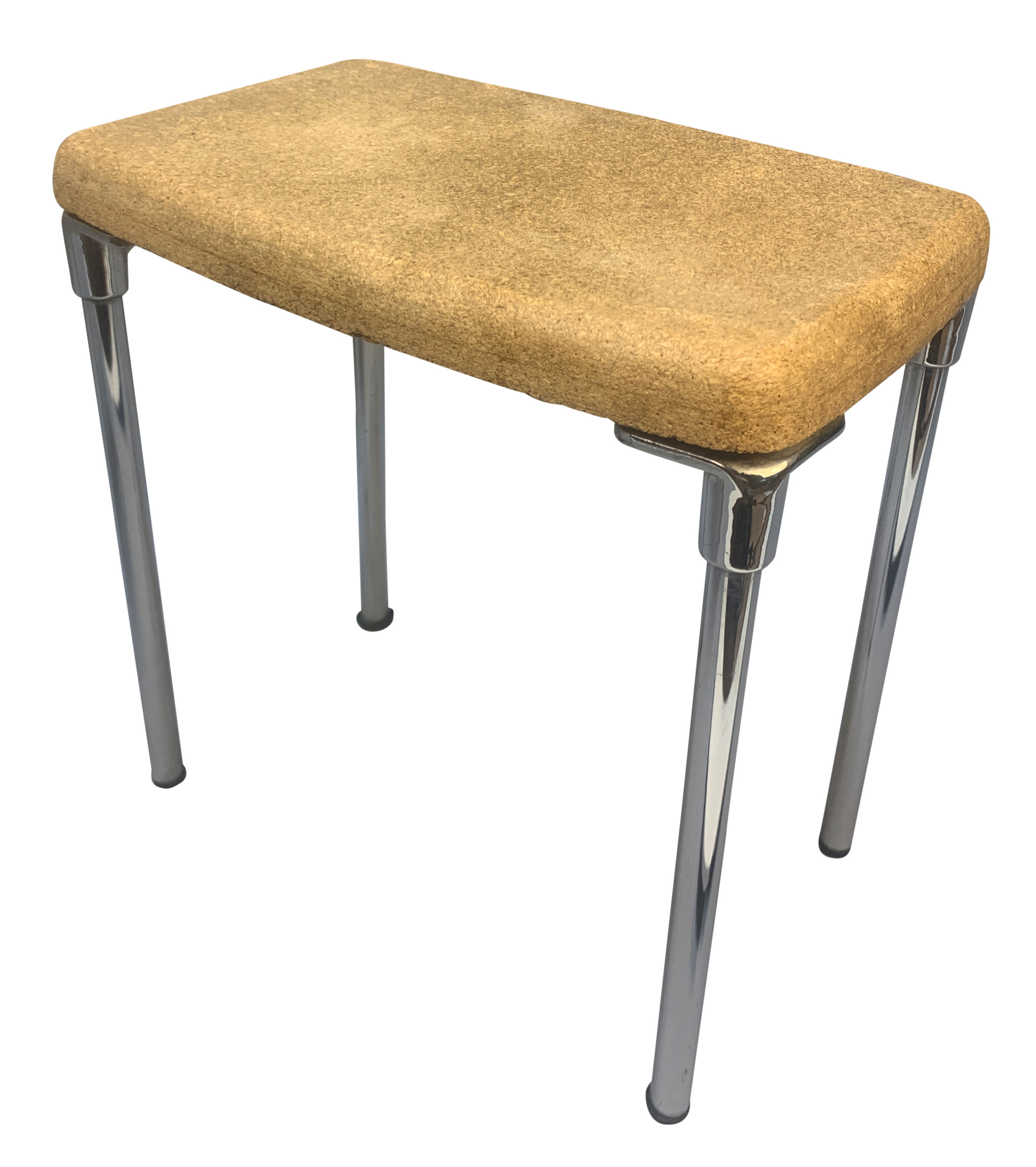A pair of English chrome stools with thick cork seats, by Valma, London.