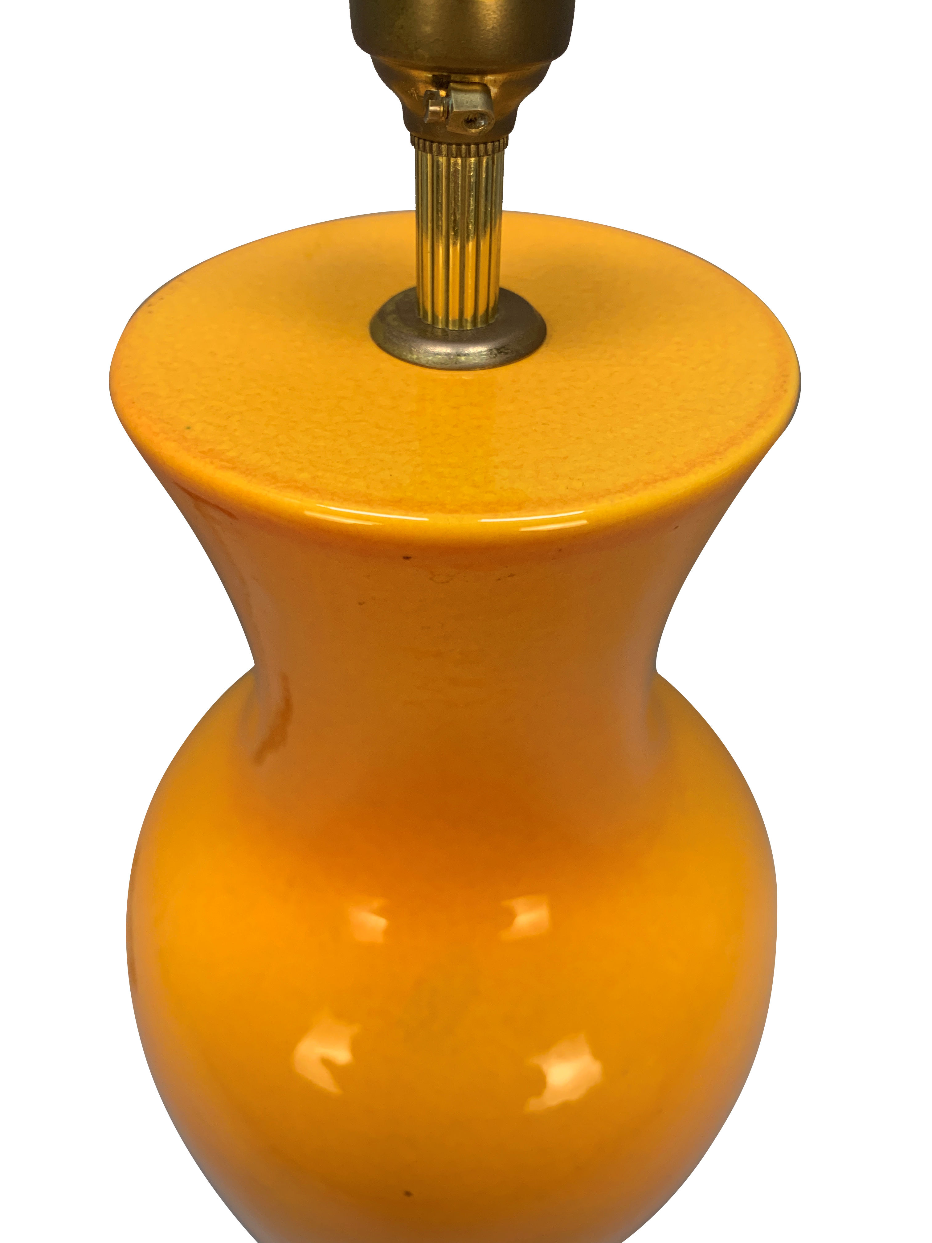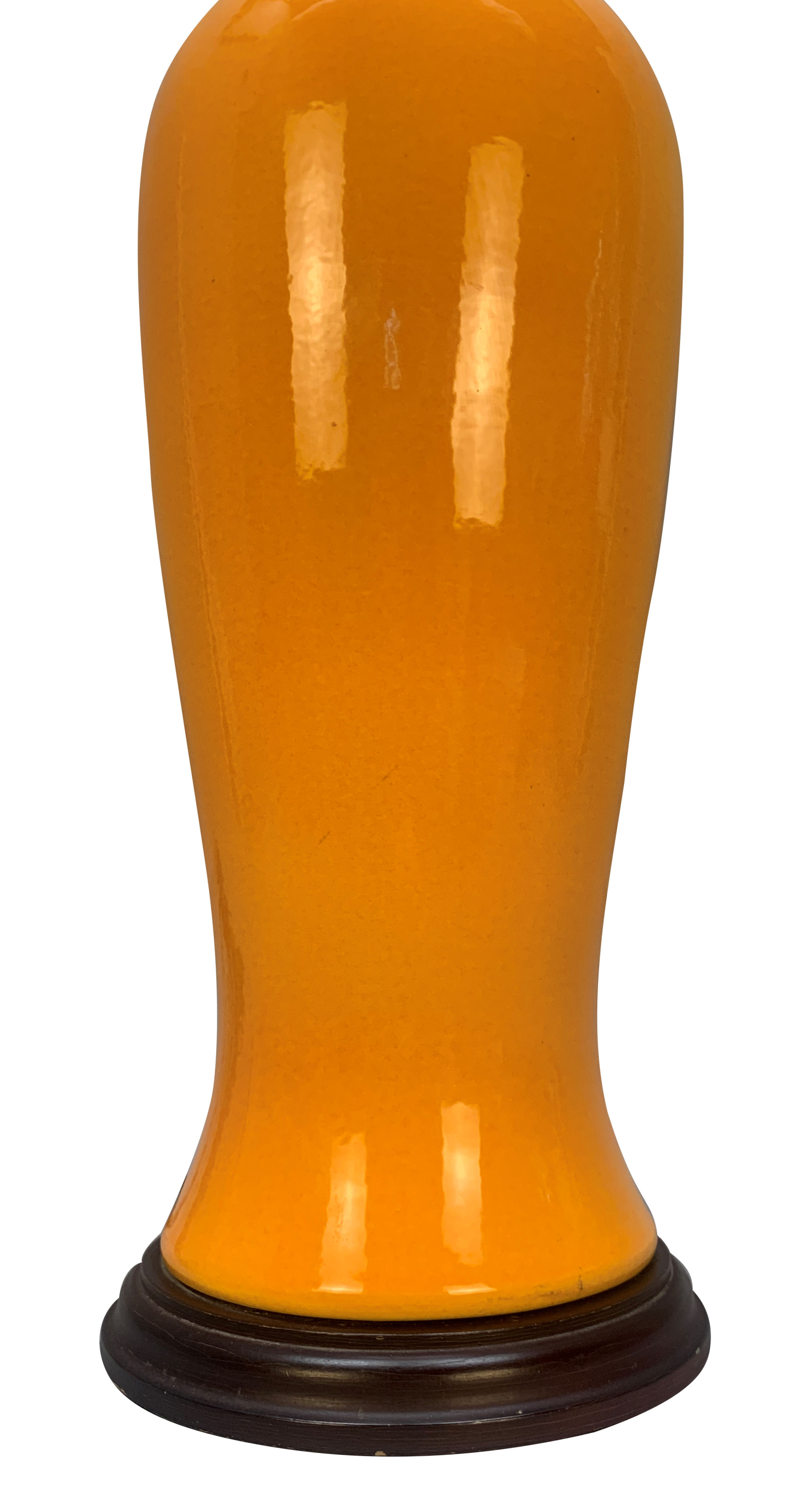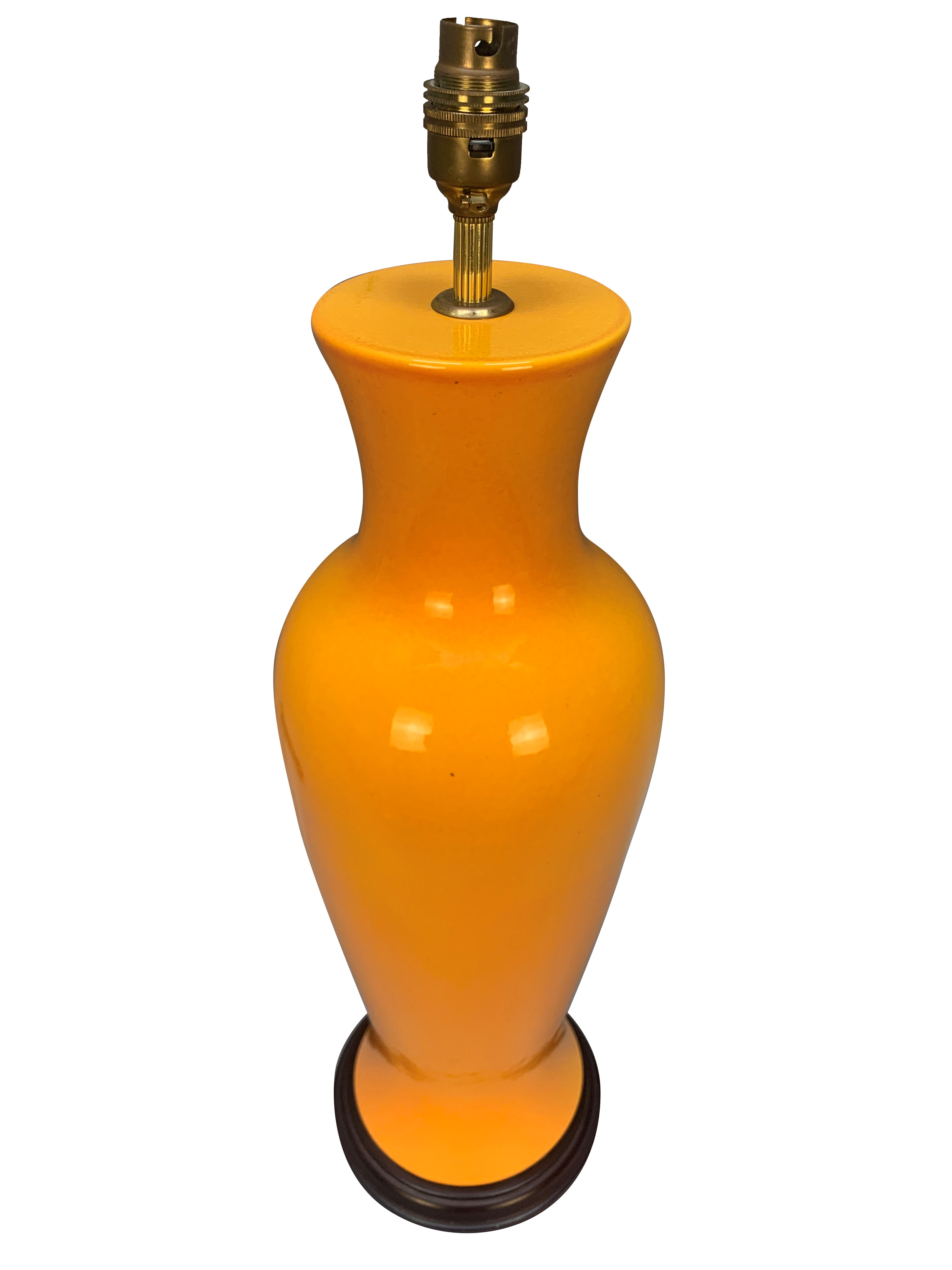 A pair of large English orange porcelain table lamps on bronze bases, reportedly by David Hicks.