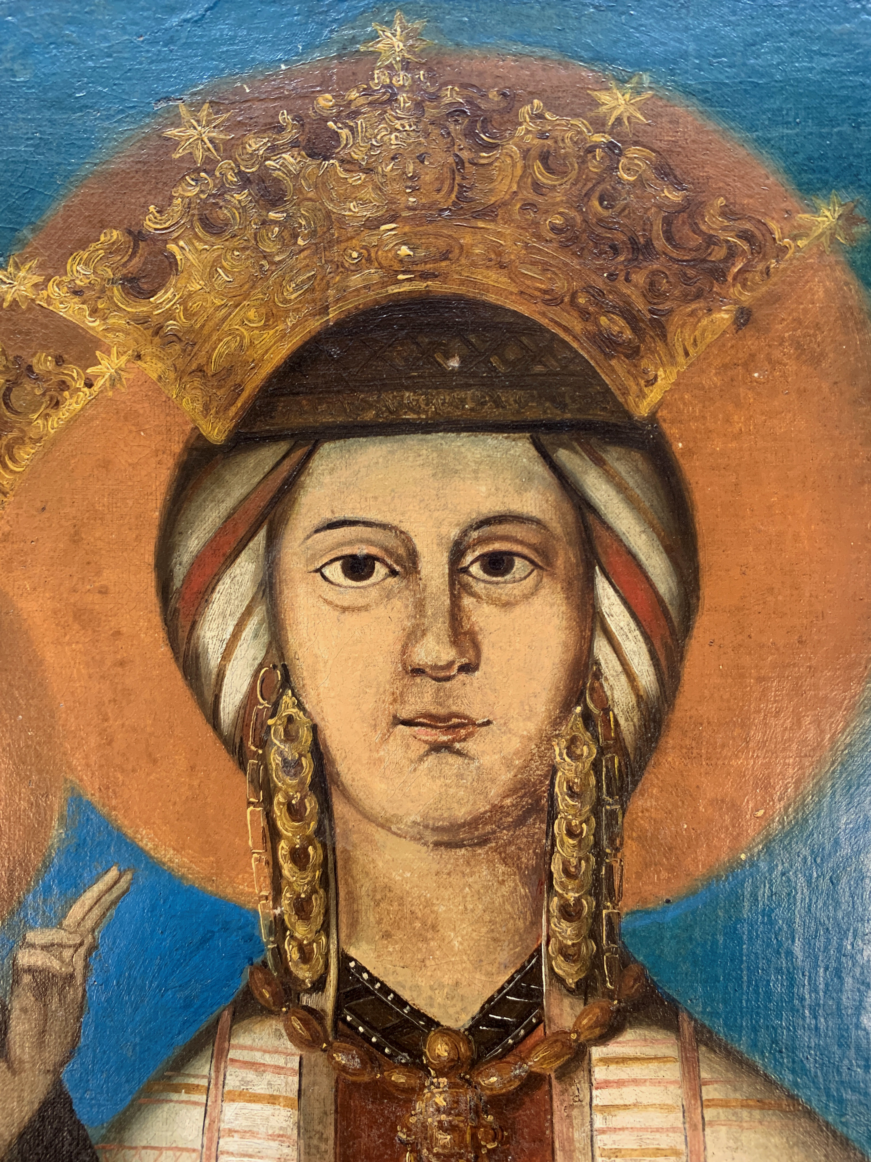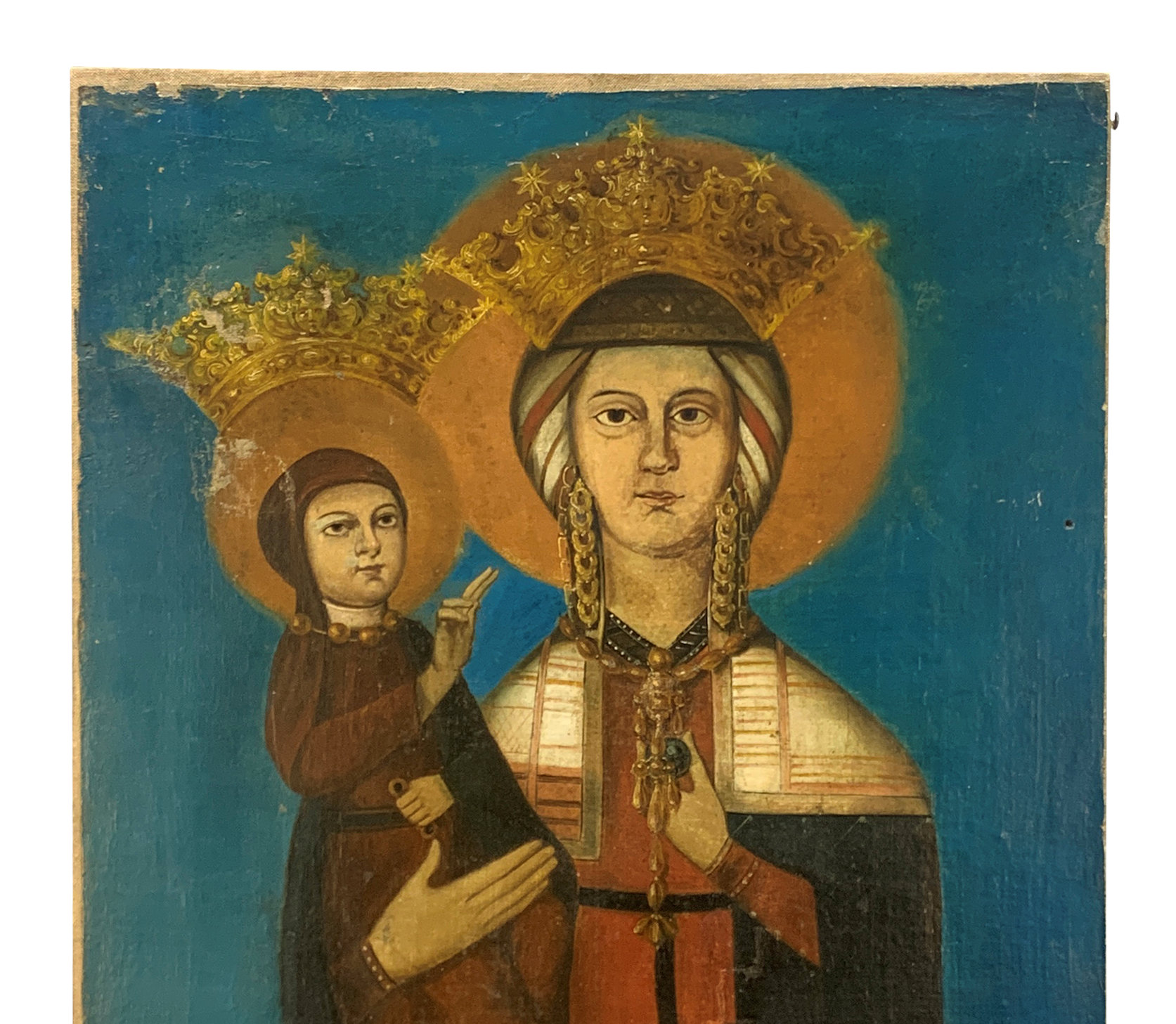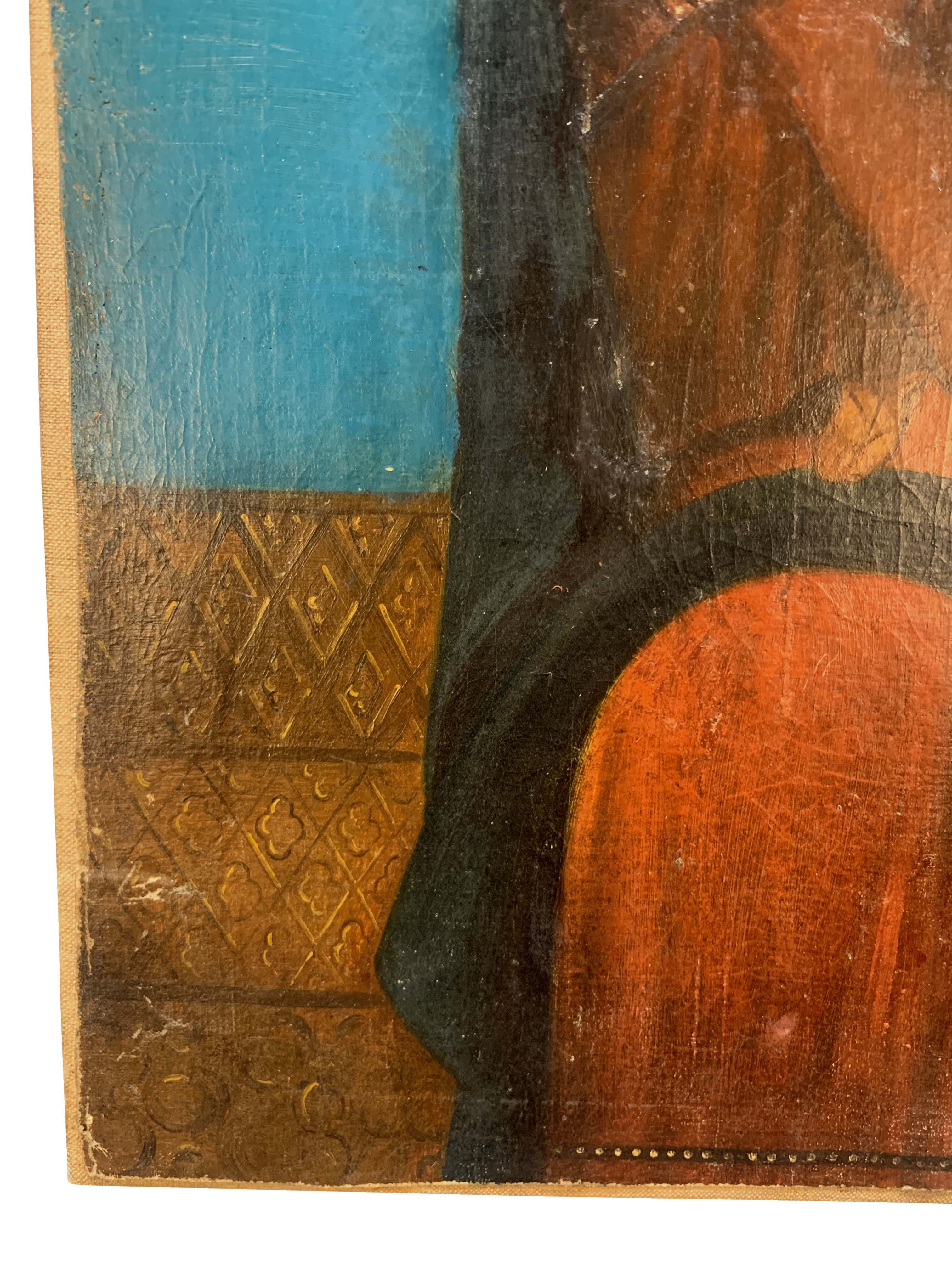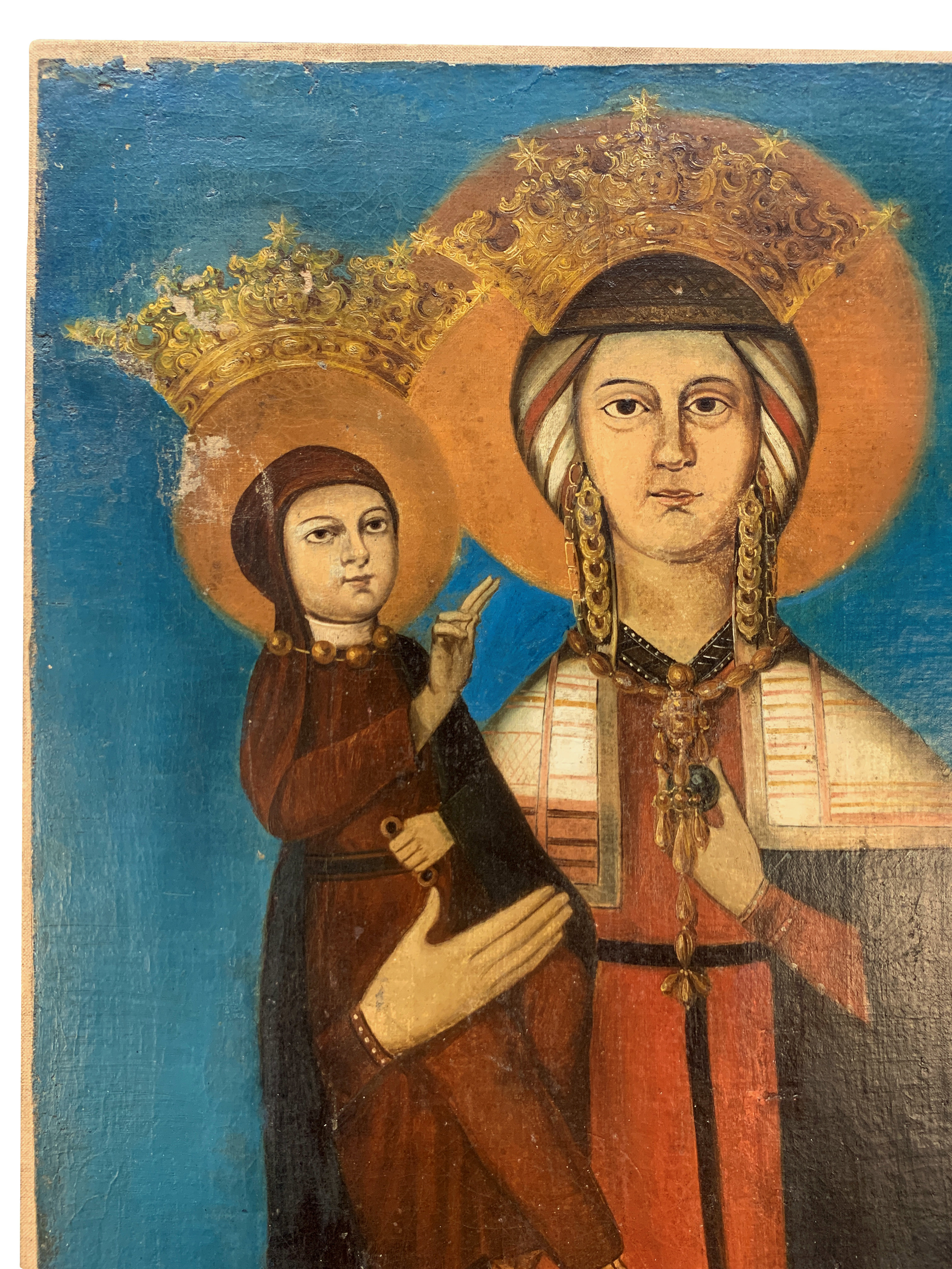 A late XVII Century Wallachian oil on canvas of the Virgin & Child. It has been re-lined.